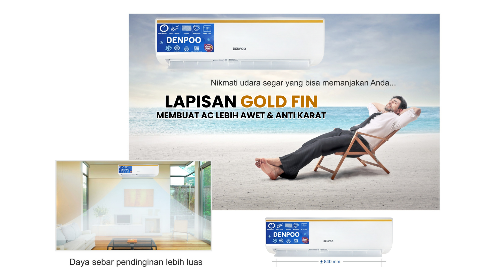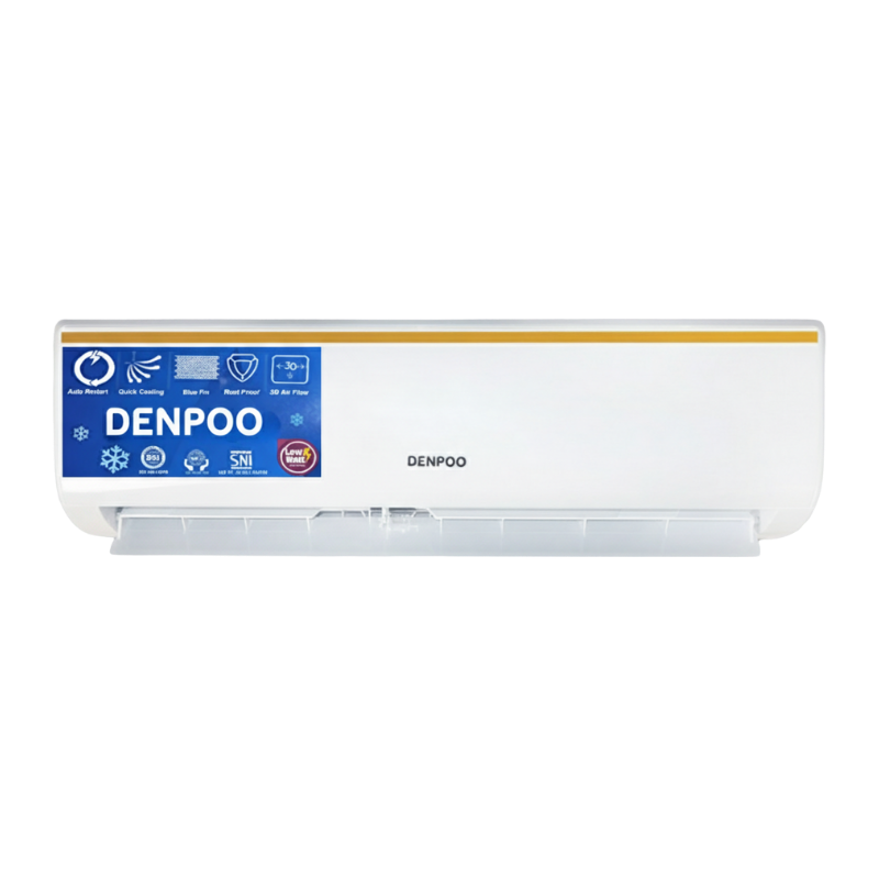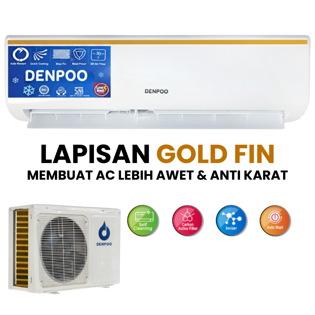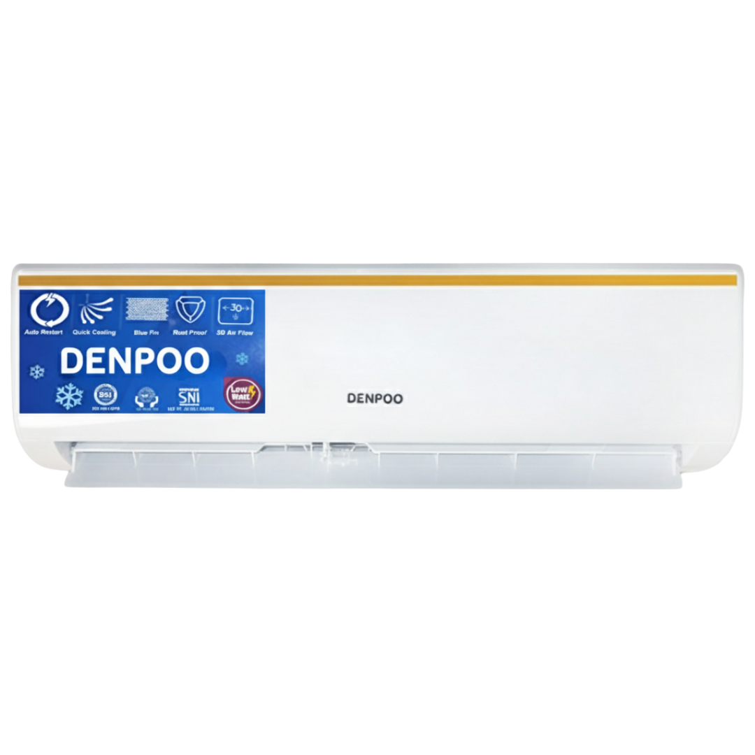 Denpoo Air Conditioner adalah pilihan tepat untuk menyejukkan ruangan Anda. Denpoo DDS-05 hadir memenuhi kebutuhan pendingin udara berkualitas tinggi, lapisan GOLD FIN membuat AC lebih awet dan anti karat serta memberikan kesejukan efisien yang tak tertandingi. AC ini juga hemat listrik berkat fitur low wattage dan memiliki daya tahan anti-karat karena telah dilengkapi dengan teknologi Goldfin.