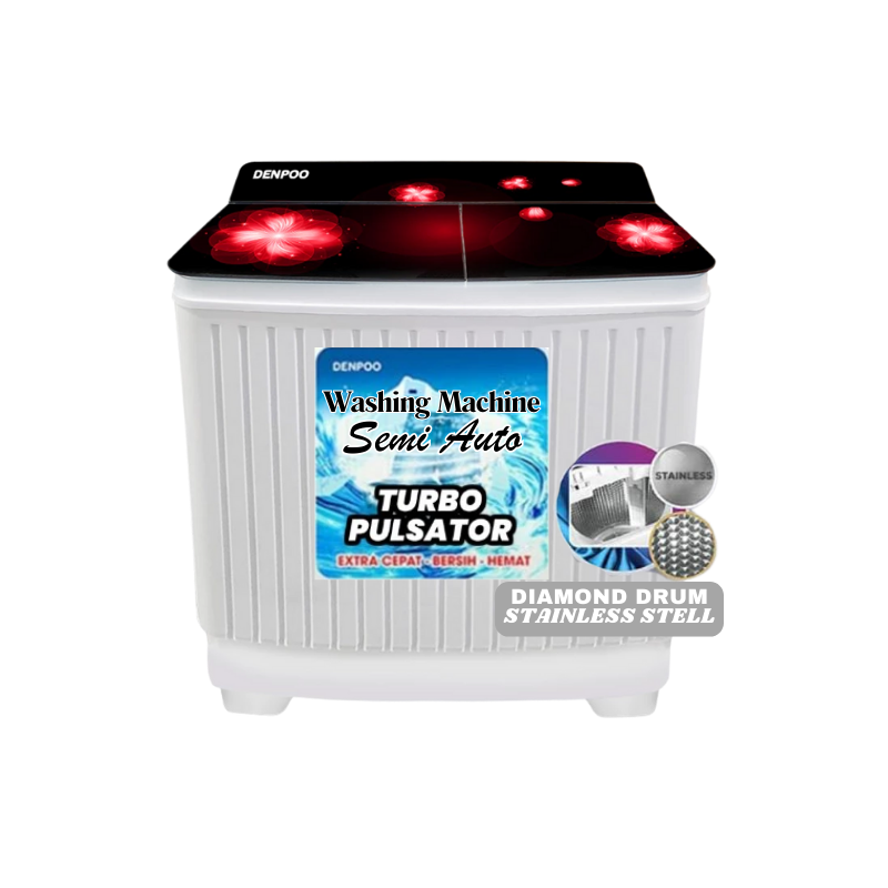 Denpoo Mesin Cuci DW 9893 merupakan mesin cuci dengan sistem semi auto ini memiliki teknologi turbo pulsator dengan kapasitas 13 kg, ruang cuci dan drum yang besar membuat anda lebih leluasa dalam mencuci pakaian, dan dilengkapi dengan kekuatan air turbo yang mampu membuat gelombang air menjadi besar sehingga membuat pakaian anda tercuci rata, Drum dengan dapat bertahan selamanya tidak berkarat serta melindungi pakaian ada dari kerusakan akibat penggunaan jangka panjang.